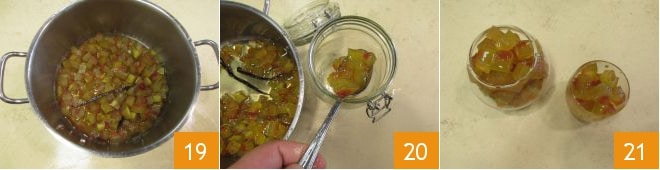 Deixe esfriar completamente em temperatura ambiente 19, depois transfira para o pote e feche 20. Agora a melancia cristalizada está pronta, guarde-a na geladeira 21.