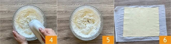 Continue a bater 4 até que o creme de leite esteja firme e consistente 5. Coloque na geladeira e deixe repousar por 2 horas. Enquanto isso, desenrole a massa folhada sobre uma superfície 6.