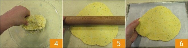 Sove com as mãos até obter uma massa homogênea 4. Abra a massa sobre uma superfície de trabalho até uma espessura de meio cm; não é necessário dar uma forma específica à massa 5. Transfira a massa para uma assadeira forrada com papel manteiga 6 e asse em forno ventilado pré-aquecido a 200°C por cerca de 30 minutos.