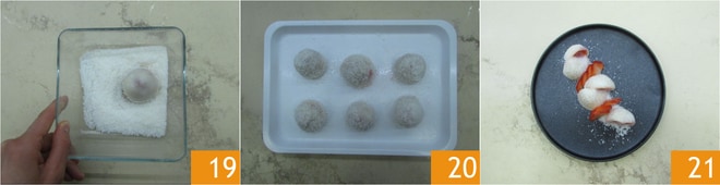 Passe-os no coco ralado 1920. Os mochi estão prontos para serem saboreados 21.