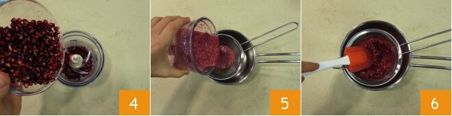 e depois bata tudo no liquidificador 4. Transfira tudo para uma peneira 5 e obtenha o suco esmagando com uma espátula 6.