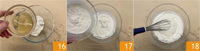 Despeje a mistura no iogurte 16 e depois adicione ao creme semi-batido 17. Incorpore com um batedor 18. Coloque na geladeira.