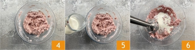 Quando a mistura estiver homogênea 4, despeje o creme de leite fresco líquido 5. Bata novamente com o mixer de imersão 6.