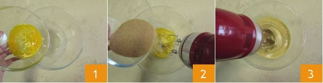 Para preparar os muffins de avelã, a primeira coisa a fazer é colocar os ovos em uma tigela 1. Comece a batê-los com uma batedeira elétrica e, enquanto isso, adicione o açúcar mascavo 2. Continue batendo até que fiquem fofos e espumosos 3.