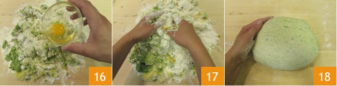 Por último, incorpore o ovo inteiro 16. Amasse energicamente 17 até obter uma massa homogênea 18.