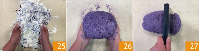 Trabalhe com as mãos 25 até obter uma massa compacta e homogênea 26. Divida a massa em porções menores com uma espátula 27.