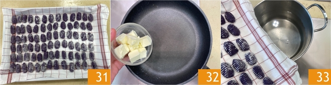 Coloque os nhoques, à medida que os faz, sobre um pano polvilhado com semolina, bem espaçados entre si 31. Leve uma panela com água salgada para ferver levemente para cozinhar os nhoques e, enquanto isso, derreta a manteiga em uma frigideira grande 32. Coloque os nhoques na água fervente 33.