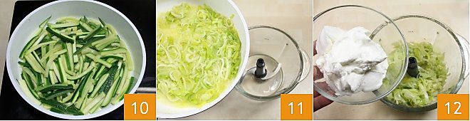 as abobrinhas não devem se desmanchar, mas permanecer intactas 10. Quando os alhos-porós estiverem cozidos, coloque-os em um mixer 11 junto com o iogurte 12