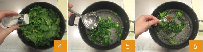 Salgue 4 e cozinhe em fogo médio por cerca de 10-15 minutos, ajudando-se com uma concha de água 5. Adicione também uma pitada de pimenta 6.