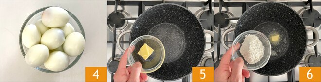 Coloque-os de lado em uma tigela 4. Prepare o molho bechamel: derreta a manteiga em uma panelinha 5, adicione a farinha 6