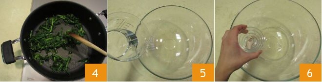 até que fiquem murchas 4, depois deixe esfriar completamente. Neste ponto, despeje em uma tigela a água morna 4 e o fermento 5