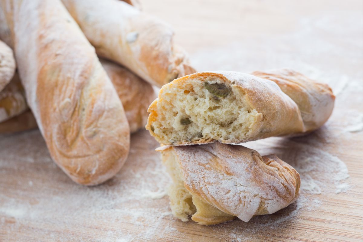 Tudo que tem a ver com pão e fermentados é definido como arte branca e, na nossa opinião, não há maneira melhor de descrever a panificação. É preciso um verdadeiro talento para criar algo mágico, que possa capturar o interesse, e nós nos esforçamos ao máximo para realizar uma verdadeira obra de arte: os filões com azeitonas. Pode parecer algo simples, talvez pensem que não é nada de novo, mas esses bastões de pão são um clássico que sempre agrada a todos. A alta hidratação, as várias fases de descanso e o cozimento adequado permitirão obter um pão crocante e leve. Mas para o sabor, cabe a você escolher sua qualidade preferida de azeitonas: verdes, pretas ou taggiasca sempre serão ótimas!