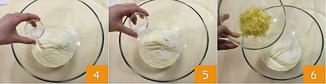 Adicione o sal e o açúcar (4-5), depois a batata amassada 6.