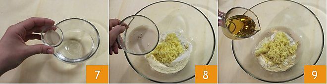 Dissolva o fermento biológico na água morna (alternativamente, você pode usar 12 g de fermento biológico fresco) 7 e adicione o líquido aos outros ingredientes 8. Neste ponto, despeje lentamente também a cerveja 9 e