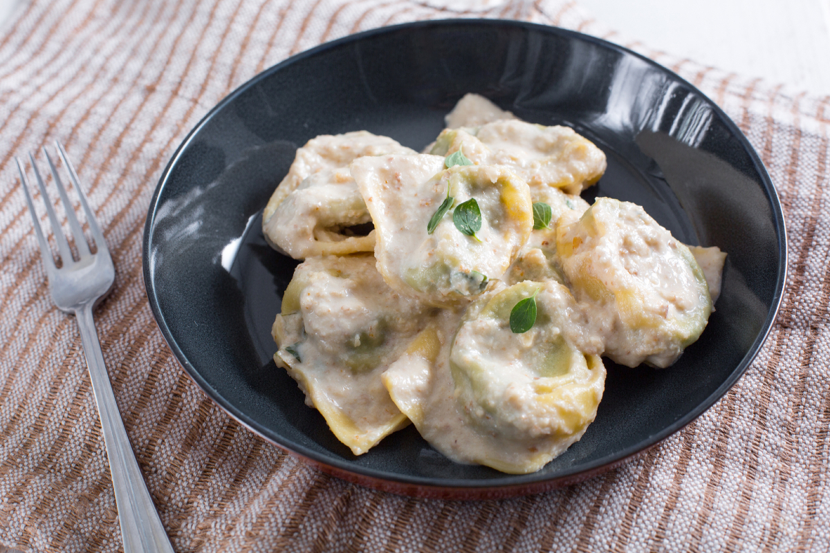 Misture 40 e, uma vez prontos, você pode escorrê-los diretamente na tigela com o molho 41. Nos pratos de servir, você pode decorar com um pouco mais de manjerona fresca 42 e seus pansoti estão prontos para serem saboreados!