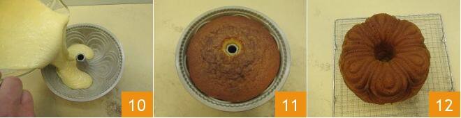 Unte e enfarinhe uma forma de anel com 24 cm de diâmetro, preencha com a massa obtida 10 e asse em forno estático pré-aquecido a 170° por 60 minutos na prateleira mais baixa do forno. Se o bolo escurecer muito na superfície, cubra com uma folha de alumínio e continue assando. Depois de verificar o cozimento com um palito, retire o bolo do forno 11, deixe esfriar e desenforme sobre uma grade 12. O seu bolo de iogurte está pronto para ser saboreado!