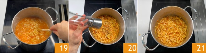 Cozinhe a pasta al dente dessa forma, adicionando mais água de cozimento dos feijões se necessário e mexendo frequentemente 19. Desligue o fogo, adicione bastante pimenta-do-reino preta 20 e deixe descansar por 10 minutos antes de servir: dessa forma, o amido tornará a pasta e feijão à napolitana ainda mais cremosa 21!