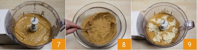 e processe no mixer para obter uma mistura lisa e homogênea 7. Filtre a mistura densa obtida usando uma peneira de malha fina e as costas de uma colher para eliminar eventuais resíduos de cascas e sementes, coletando a mistura em uma tigela 8. Transfira novamente a mistura para o mixer e adicione o miolo bem espremido 9 e ajuste, se necessário, o sal, a pimenta ou o vinagre.