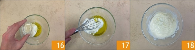Adicione uma pitada de sal, o suco de limão 16 e misture com um batedor 17 até obter um creme liso e espesso 18. Transfira-o para uma tigelinha de servir.