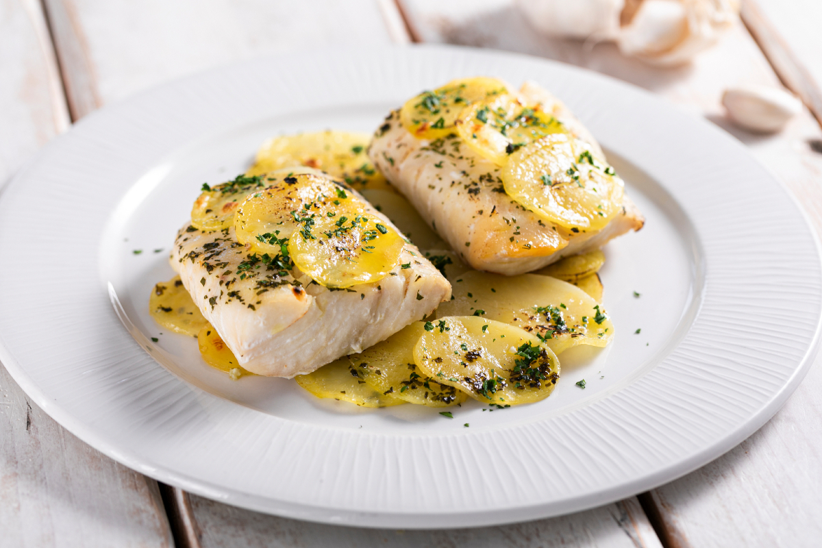 Peixe assado com batatas