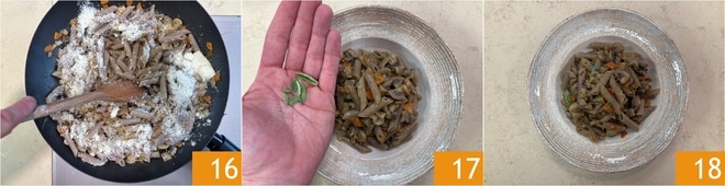 Agora, basta misturar bem para integrar todos os ingredientes 16, perfume com algumas folhas de sálvia 17 e seu prato está pronto para ser servido! 18.