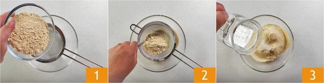 Para preparar a piadina com farinha de grão-de-bico, peneire a farinha 1 2. Adicione uma pitada de sal e a água em temperatura ambiente 3.