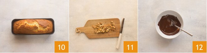 Quando estiver assado, retire do forno e deixe esfriar completamente 10. Agora corte as avelãs ao meio 11 e derreta o chocolate 12.