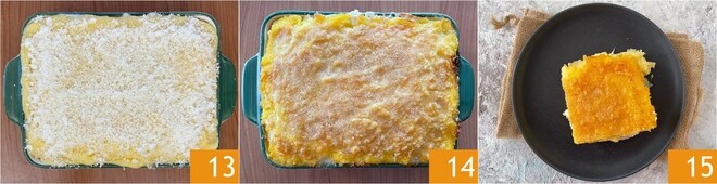 Asse em forno estático pré-aquecido a 180° por 20 minutos 13. Quando estiver dourada na superfície, retire do forno 14 e sirva a polenta ao forno ainda quente e cremosa 15!