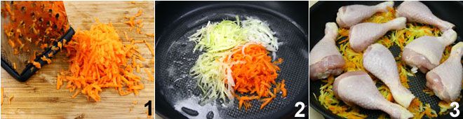 Para preparar o frango aos 4 sabores, comece pela preparação do frango: separe as coxas das sobrecoxas, retire o fêmur destas últimas e amarre-as com um barbante de cozinha como se fossem rolinhos (alternativamente, você pode usar 8 coxas). Lave a cebola, o aipo, o alho-poró e a cenoura e corte-os em julienne, coloque-os então em uma panela grande com a manteiga derretida e deixe-os dourar bem. Depois coloque na panela as 4 coxas e as 4 sobrecoxas,