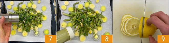 Salgue 7, apimente e tempere com um fio de azeite 8. Fatie finamente um limão 9.
