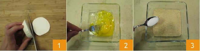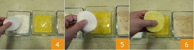 Neste ponto, passe o primosale primeiro na farinha 4 e depois no ovo (5-6).