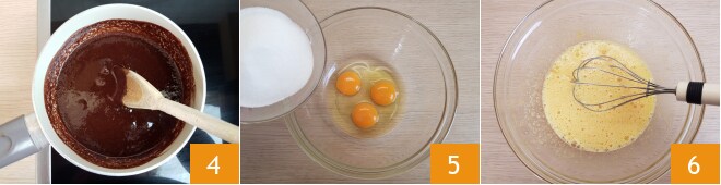 Retire do fogo e deixe esfriar por 5-6 minutos 4. Em uma tigela, coloque os ovos e o açúcar 5 e bata-os usando um batedor manual 6.