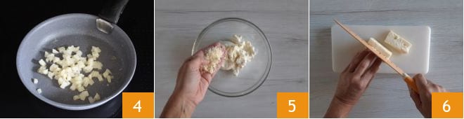 Devem ficar bem macios 4. Em uma tigela, coloque a ricota; adicione o Grana Padano e misture 5. Corte o taleggio em pedacinhos 6.