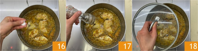 Tempere com sal 16 e pimenta 17. Tampe 18 e deixe cozinhar por cerca de 1 hora ou até que a carne se desfie facilmente.