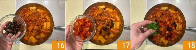 Complete com as azeitonas 16 e os tomatinhos assados 17. Perfume com bastante salsinha 18.