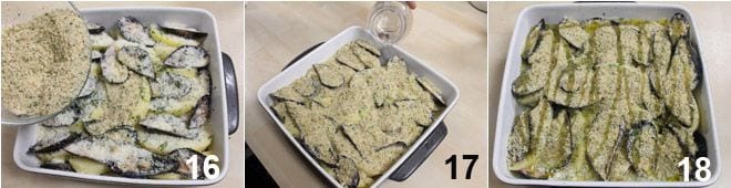 Prossiga com outra camada de batatas, mexilhões e arroz, adicione uma pitada de salsa, salgue e apimente e complete a camada com o pão ralado 16. Adicione delicadamente a água, de um lado da assadeira, até chegar logo abaixo da farofa 17. Complete com um fio de azeite e leve ao forno o arroz, batatas e mexilhões, na parte mais baixa do forno, a 180° por 60 minutos em forno estático. A superfície deve ficar bem dourada e seu arroz, batatas e mexilhões estará pronto para ser saboreado!