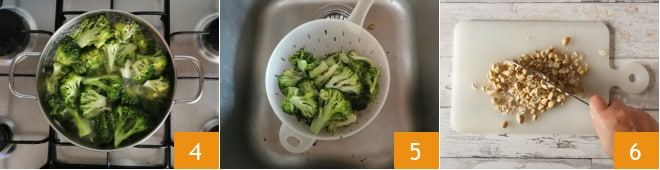 Cozinhe por cerca de 20 minutos 4. Por fim, escorra os brócolis com uma peneira 5. Agora, pique grosseiramente as castanhas de caju com uma faca 6.