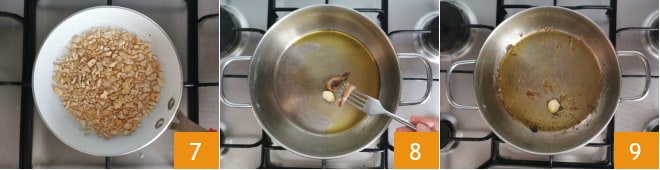 Torre as castanhas de caju em uma frigideira antiaderente por alguns minutos 7. Em uma panela, despeje um fio de azeite extra virgem e refogue o dente de alho, depois adicione as anchovas escorridas 8. Mexa com uma concha até que se dissolvam 9.