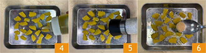 Tempere com óleo 4, sal 5, pimenta e açúcar mascavo 6.