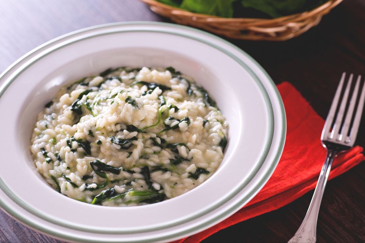 Dizer "espinafre" no imaginário infantil é dizer Popeye, o simpático marinheiro dos quadrinhos que ganhava sua força justamente graças a uma lata de espinafre... sempre a mesma, devorada de uma só vez ao natural! Mas vocês não acham que sua doce namorada Olívia nunca pensou em preparar uma comidinha à base de espinafre para seu marinheiro favorito? Nós imaginamos que sim, e com certeza seu prato favorito seria este risoto de espinafre! Um primeiro prato saudável e nutritivo, feito com uma das verduras da estação mais amadas, rica não só em sabor e cor, mas também em muitas propriedades. Saboreie também este risoto de espinafre e você poderá contar com um efeito Popeye imediato!