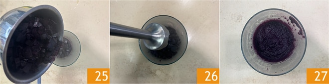 Transfira tudo para um mixer 25 e bata 26 até obter um creme liso e homogêneo 27.
