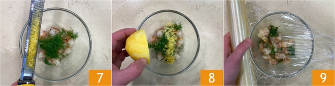 Perfume com a casca ralada 7 e o suco de limão 8. Misture bem e cubra a tigela com filme plástico 9. Deixe marinar na geladeira até o momento de usar.
