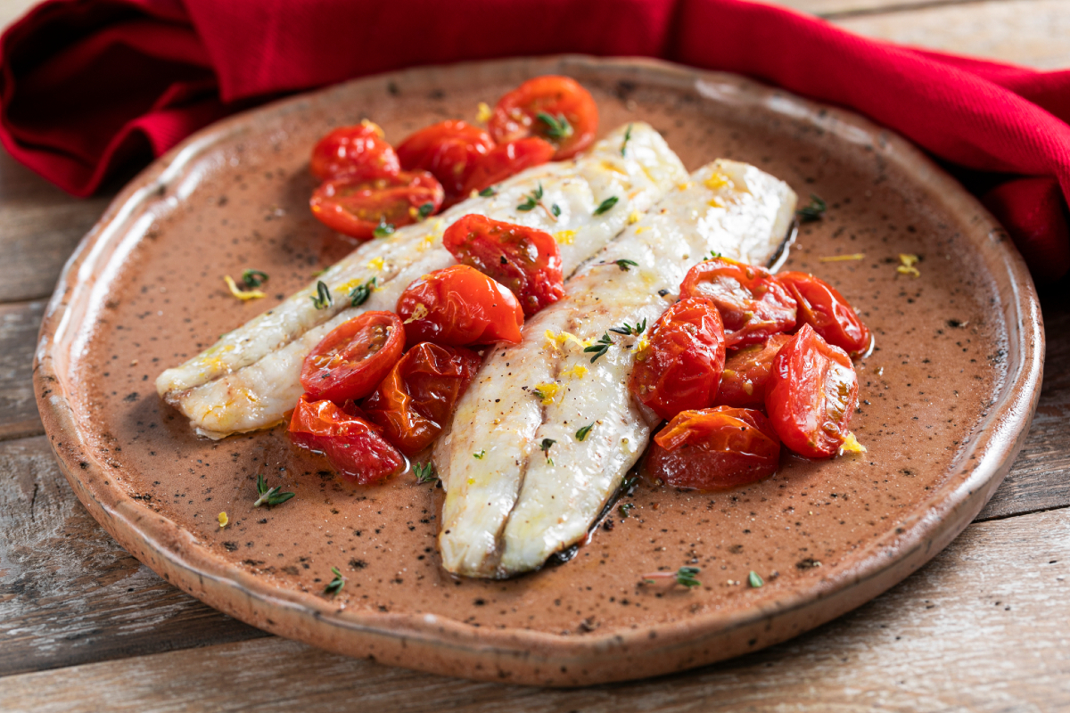 Acompanhando estarão os tomatinhos datterino. Pequenos, doces e intensos, que no cozimento se transformam em um acompanhamento suculento e aromático. O equilíbrio entre acidez e o açúcar mascavo criará um contraste perfeito com a delicadeza do peixe, dando ao prato uma nota viva e mediterrânea.