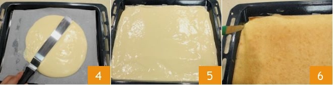 Pegue uma assadeira 30x40, unte-a e forre com papel manteiga e espalhe cuidadosamente a massa com uma espátula 4: você deve obter uma camada não mais alta que 7 mm 5. Asse em forno estático pré-aquecido a 220° por 8-9 minutos (se for forno ventilado, a 200° por 4-5 minutos). Uma vez assado, retire e com uma faquinha, solte delicadamente as bordas que grudaram na assadeira 6;
