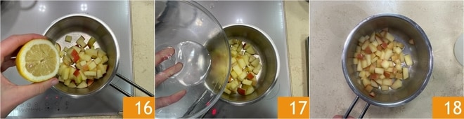 Junte o suco de limão 16 e metade da quantidade de água 17. Depois, cozinhe até que estejam macias 18, isso levará cerca de 10 minutos.