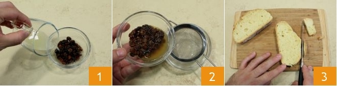Para preparar os rolinhos à beccafico com limão e gengibre, comece lavando as passas e deixando-as de molho com 25 ml de suco de limão 1 por pelo menos 10 minutos. Após o tempo necessário, você pode escorrê-las, reservando o líquido de molho que será utilizado na receita 2. Enquanto isso, retire a crosta das fatias de pão 3