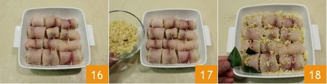 Uma vez terminado 19, regue com 10 ml de suco de limão 20 e leve os rolinhos ao forno pré-aquecido a 180°C por cerca de 10 minutos. Uma vez cozidos, retire os rolinhos de peixe-espada à beccafico com limão e gengibre do forno, deixe-os esfriar ligeiramente e desfrute como um delicioso segundo prato 21!