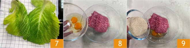 Escorra-as cuidadosamente, sem quebrá-las, e estenda sobre um pano limpo, cuidando para não sobrepor 7, depois deixe esfriar. Prepare agora o recheio: em uma tigela grande, una a carne moída, os ovos 8 e o pão ralado 9.<\/p>