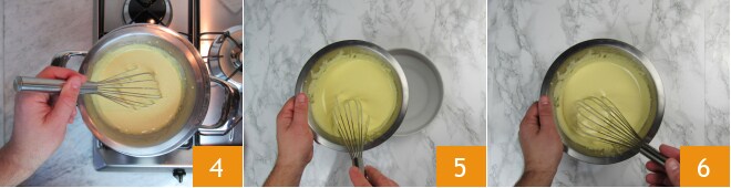 Você deverá bater energicamente com o batedor por cerca de meia hora, elevando a temperatura entre 70° e 75°: use um termômetro de cozinha para ter certeza 4. Assim que obtiver uma mistura espumosa e mais densa, mova a tigela para uma maior com água fria 5. Continue mexendo até esfriar, depois coloque a tigela na geladeira até firmar completamente 6.