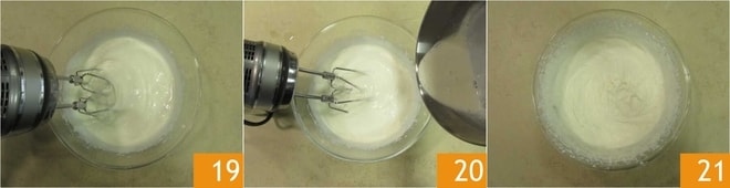 Você deve obter um chantilly semi-batido 19. Neste ponto, ainda com a batedeira em ação, adicione a gelatina dissolvida no chantilly, que já deve estar morna 20 e bata até que esteja bem incorporada 21.